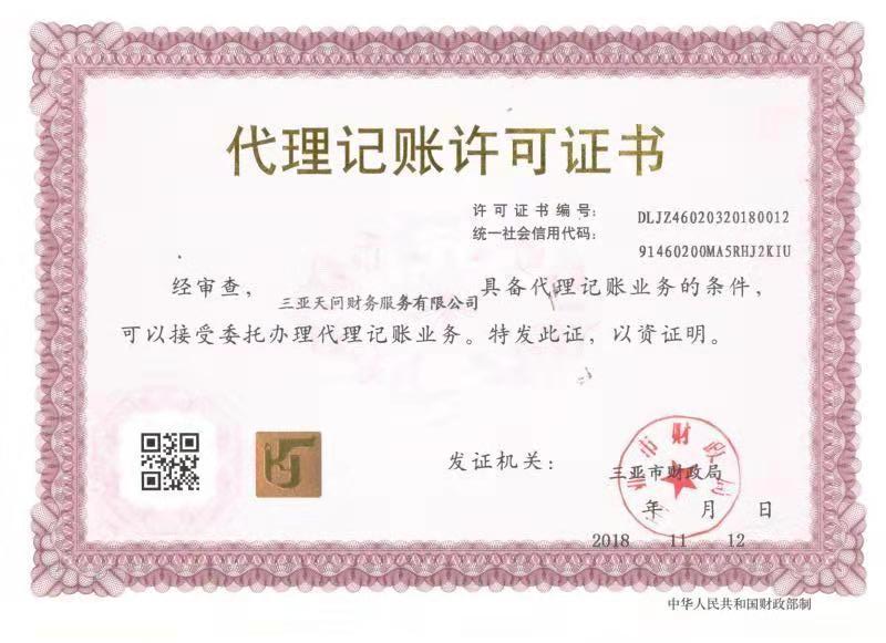 三亞天問(wèn)財(cái)務(wù)服務(wù)有限公司,成立于2017年6月份,是經(jīng)三亞市工商行政管理局審核批準(zhǔn)設(shè)立的一家綜合性代理服務(wù)機(jī)構(gòu)。我們擁有豐富可靠的社會(huì)資源,規(guī)范的操作體系,已經(jīng)成功的為多家公司辦理了工商注冊(cè)、變更、代理記賬等相關(guān)業(yè)務(wù),得到客戶(hù)的一致好評(píng)。